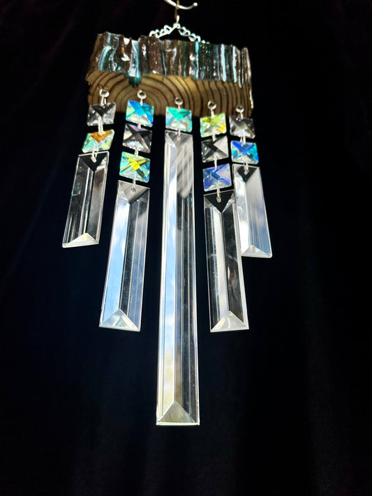 Glistening Driftwood & Crystal Wind Chime Sun Catcher 7 Strand
