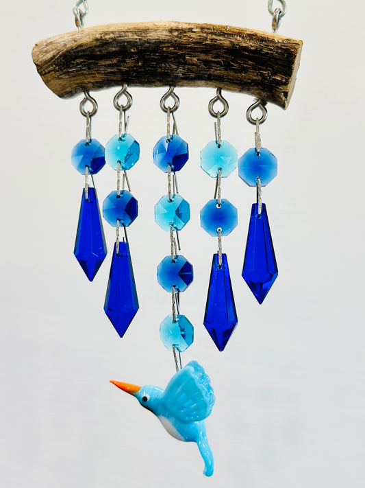 Emerald Green Hummingbird & Vintage Crystal Sun-catching Wind-Chime