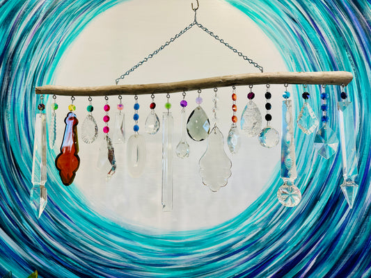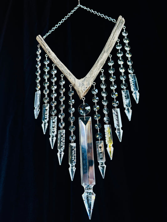 Crystals for Crossed Paws Three Strand Natural Driftwood Sun-catching Wind-chime with Crystal Spears